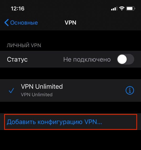 1. Перейдите в Настройки > Основные > VPN > Добавить конфигурацию VPN...