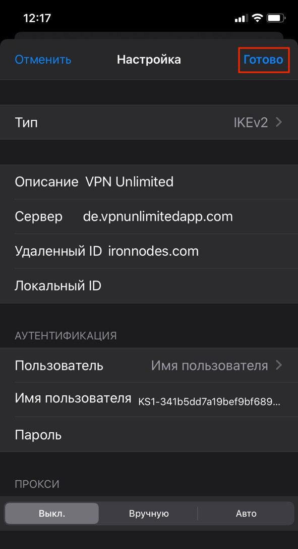 Описание: введите название на ваш выбор, например VPN Unlimited (IKEv2)