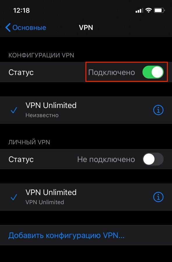 3. Чтобы активировать IKEv2 VPN соединение, включите соответствующий переключатель.